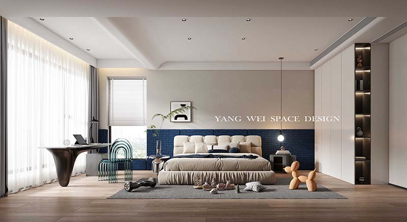 兒童房 藍(lán)色調(diào)的兒童房給人耳目一新的感覺(jué)。墻面裝飾了活潑的元素,床鋪設(shè)計(jì)貼心而安全。這里不僅是孩子的休息空間,更是他們的玩樂(lè)與學(xué)習(xí)天地,為成長(zhǎng)注入無(wú)盡樂(lè)趣。