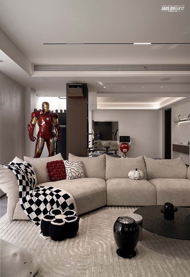 會(huì)客廳 負(fù)一樓是家人和朋友交流互動(dòng)的絕佳空間。會(huì)客廳以舒適和現(xiàn)代為主調(diào),柔軟的大型沙發(fā)搭配簡(jiǎn)約又不失趣味的裝飾,讓空間充滿(mǎn)活力,成為親友聚會(huì)的最佳場(chǎng)所。