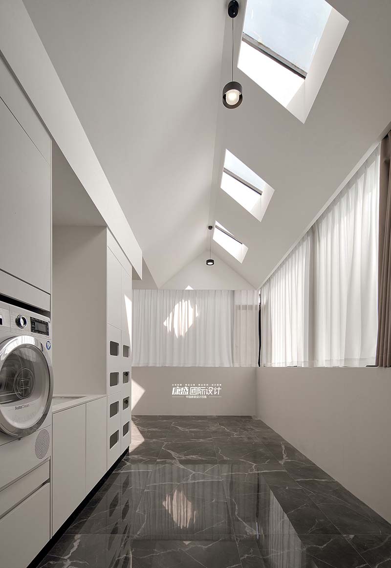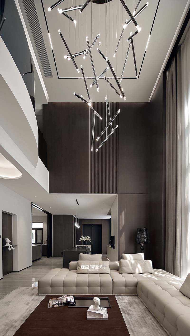 Overhead, a custom crystal chandelier hangs in the center of the sky, like the Milky Way falling into the world. Whether it's the sun shining during the day or the lights shining at night, this chandelier adds a touch of artistic touch to the living room space. From the second floor, you can see the entire living room. The design of the void makes the space more grandiose, and the careful placement of furniture outlines the clarity and beauty of the functional area. Whether it's a family get-together or a meeting with guests, it's the perfect place to be.
