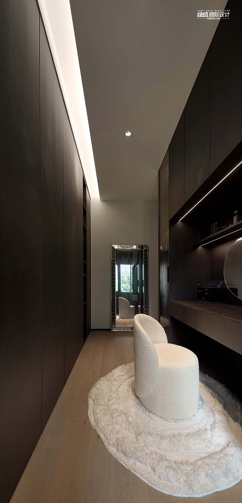 主臥套房 主臥展現(xiàn)了舒適與奢華的極致融合。大面積的臥室空間搭配柔和燈光,營(yíng)造出放松的氛圍。主臥衣帽間寬敞有序,特別設(shè)置了一把白色椅子與全身鏡,為每一天的穿搭帶來(lái)便利。主臥衛(wèi)生間以大理石為主材,精致又實(shí)用,并與洗曬陽(yáng)臺(tái)無(wú)縫銜接,兼具采光與私密性,讓生活更加舒心。