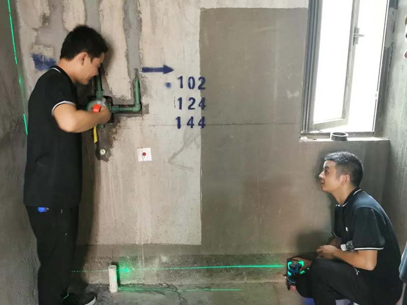 ▲ 檢查衛(wèi)生間預(yù)埋尺寸