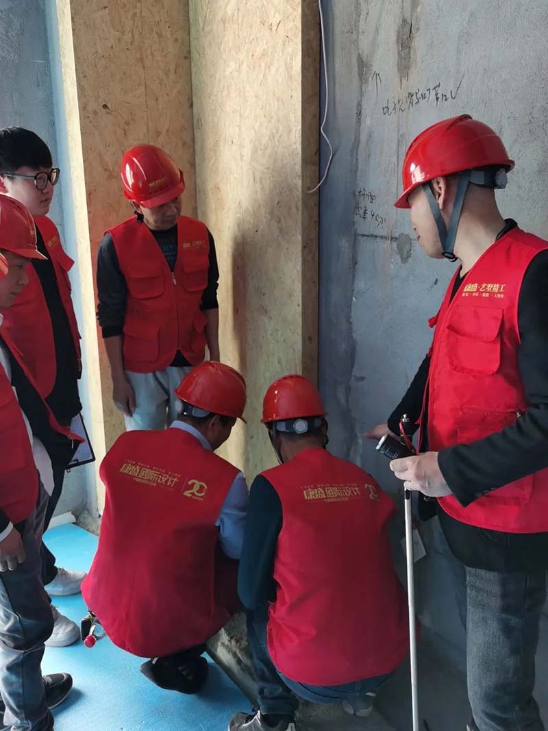 ▲水電施工期間與現(xiàn)場(chǎng)工人核對(duì)圖紙