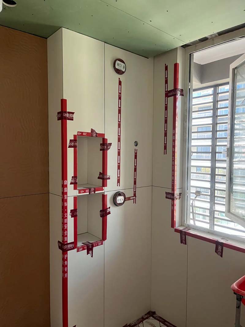 ▲陽角條保護(hù)未到位,要求及時(shí)整改