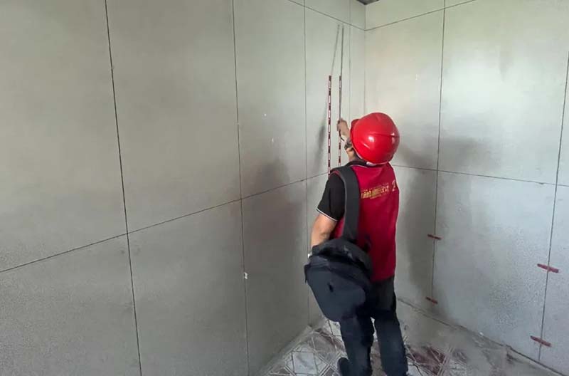 ▲ 檢查衛(wèi)生間墻磚空鼓