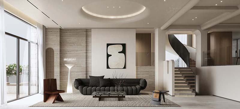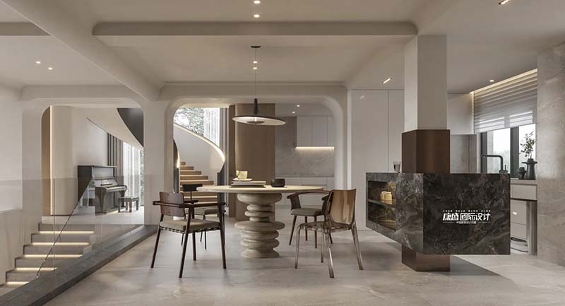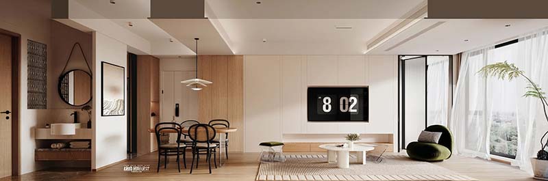 追求做減法的生活方式,呈現(xiàn)的空間是質(zhì)樸、自然的現(xiàn)代侘寂。