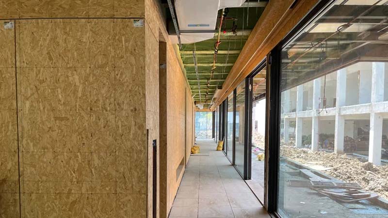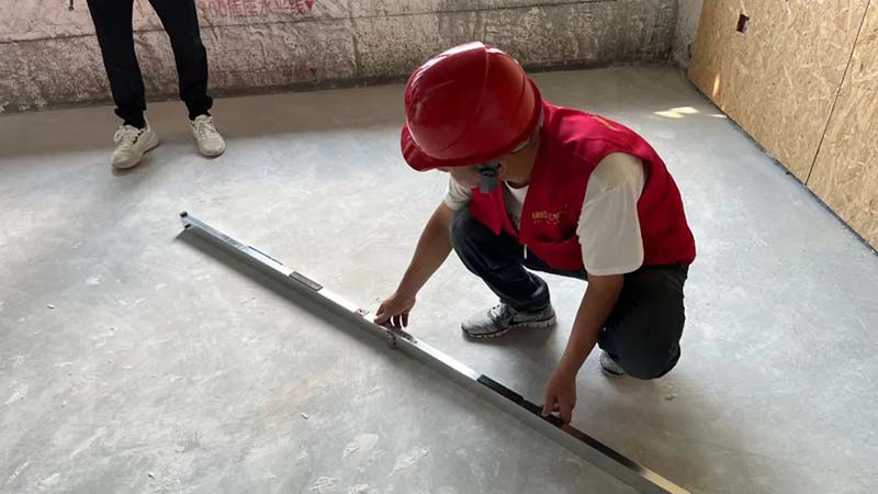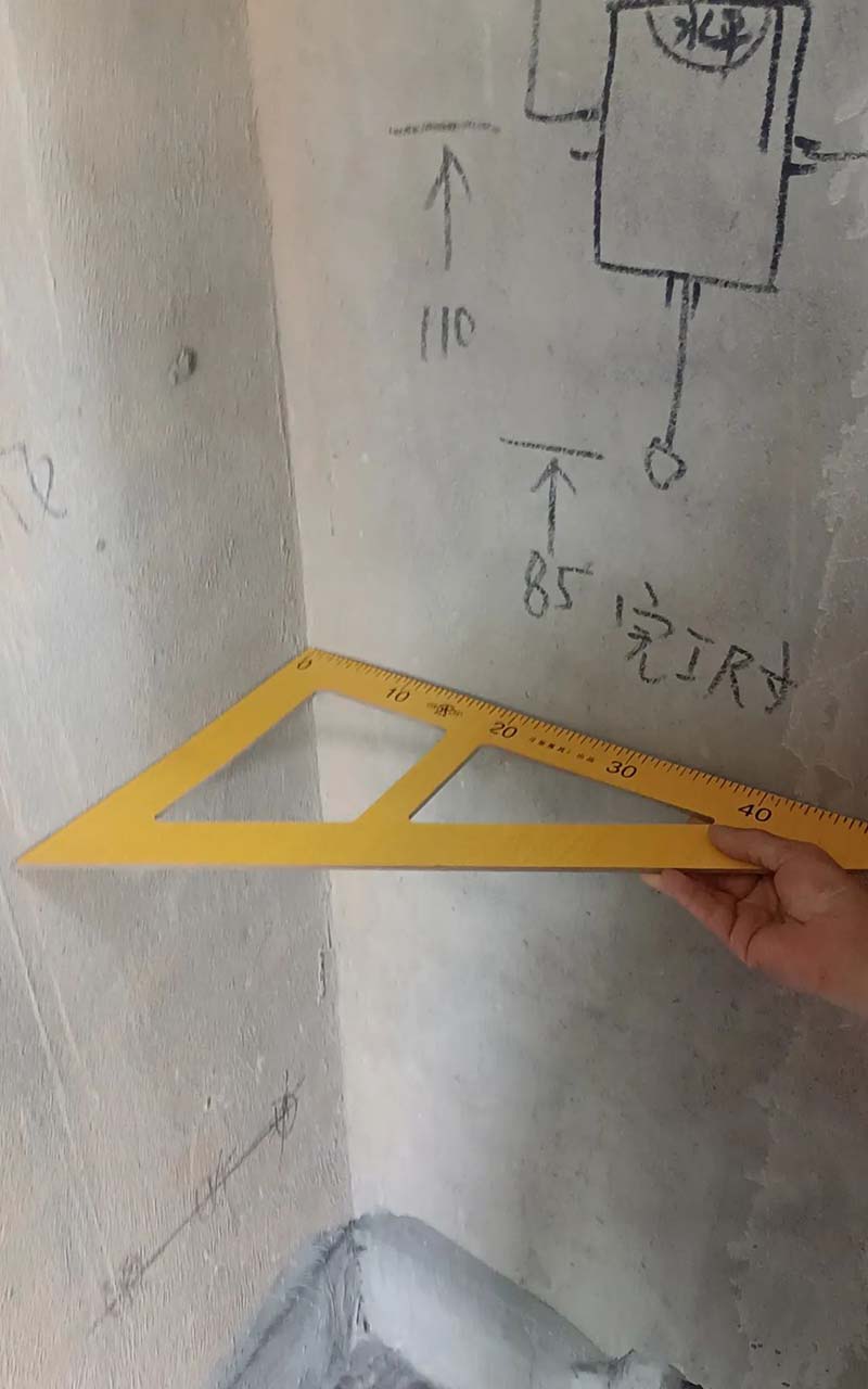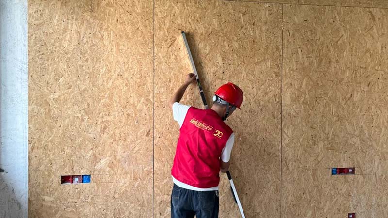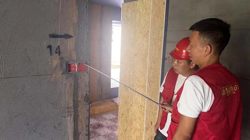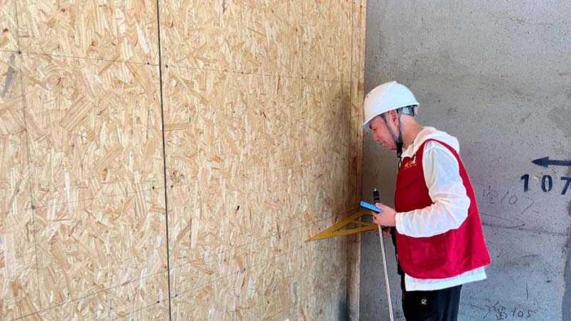 ▲ 檢查歐松板打底和墻面陰角是否方正