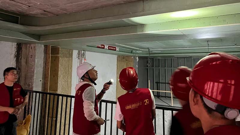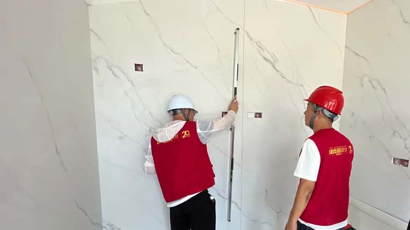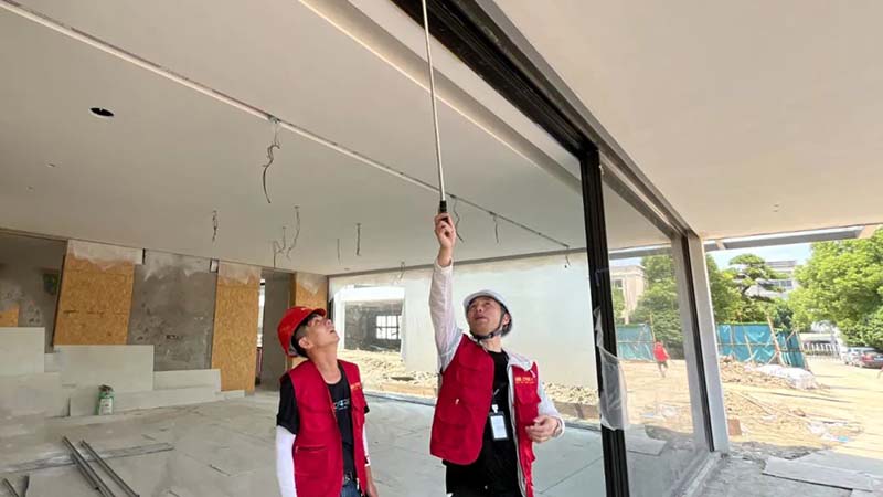 ▲ 檢查石膏板彈線和V字縫預(yù)留工藝是否到位