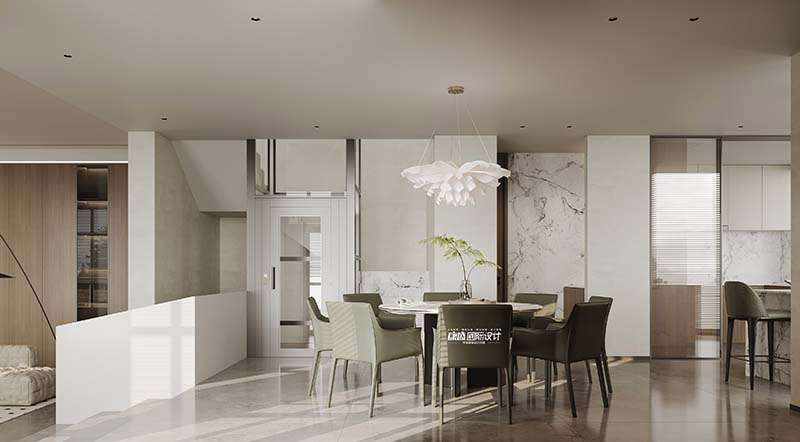 全屋以開放式的社交場景思維,搭配大面積的木色材質(zhì),營造出舒適寧靜的氛圍。