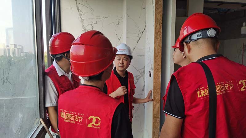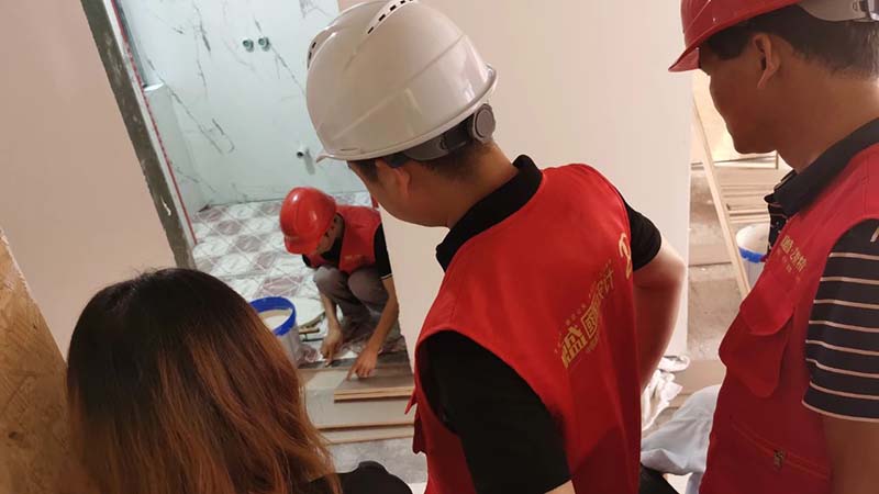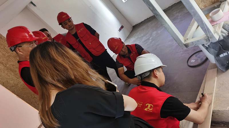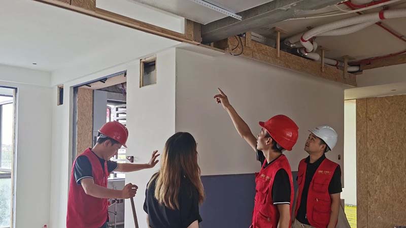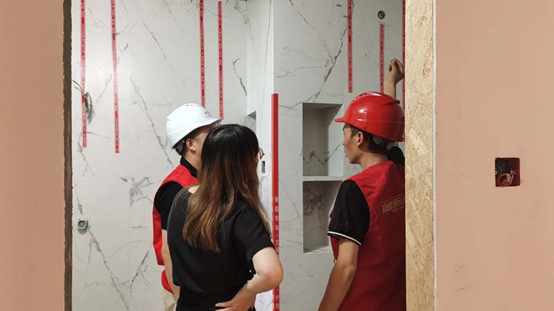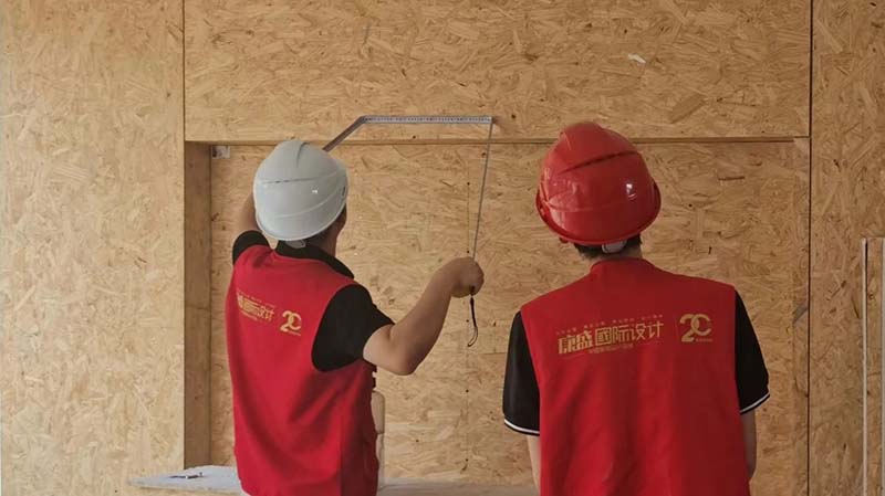 ▲ 檢查背景墻面歐松板基礎(chǔ)工藝