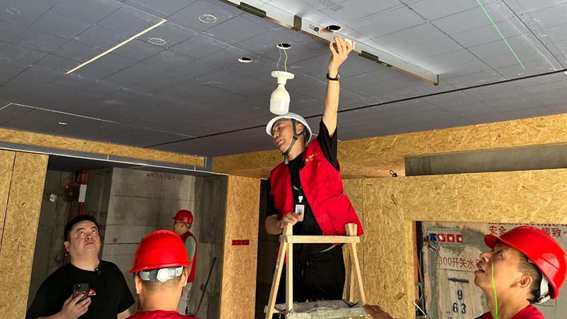 ▲ 檢查石膏板彈線和V字縫預(yù)留工藝