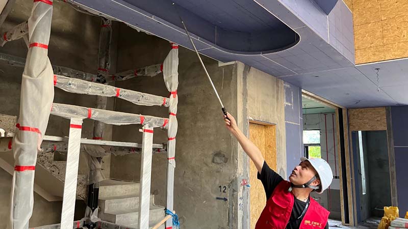 ▲ 檢查石膏板吊頂平整度