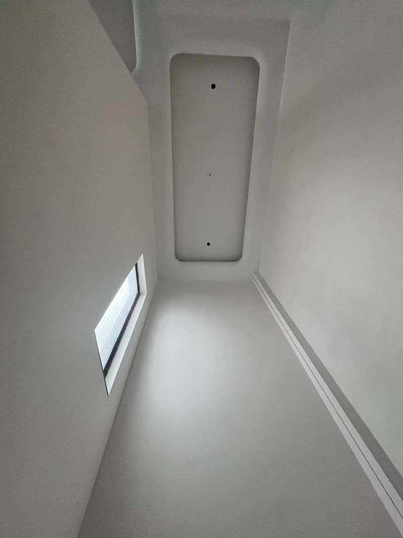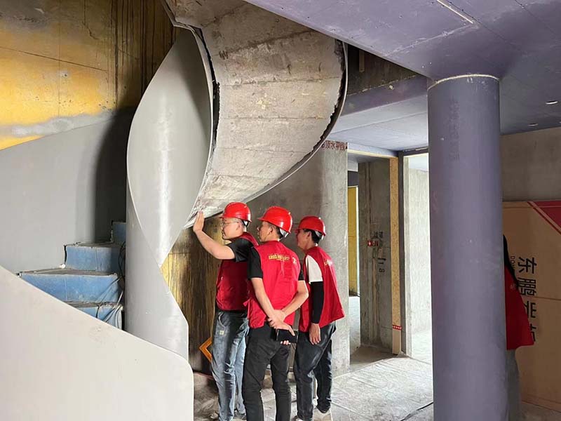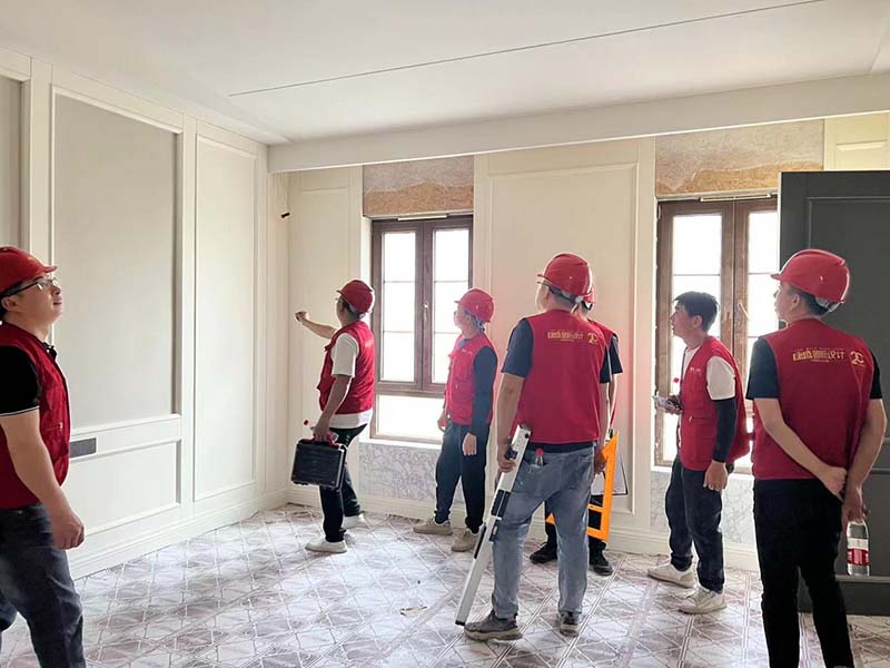 ▲檢查石膏板吊頂?shù)木€條釘眼處理