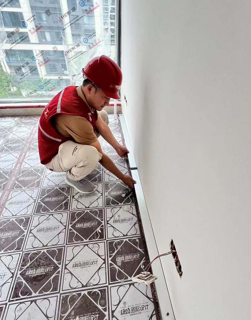 ▲檢查踢腳線的平整度