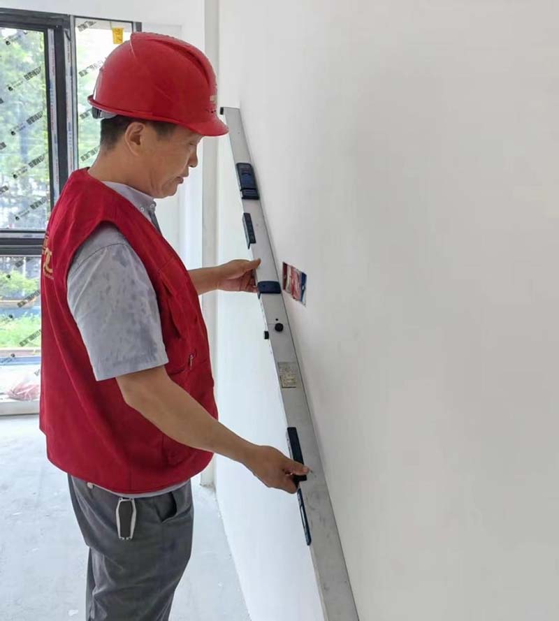▲檢查乳膠漆墻面的垂直度