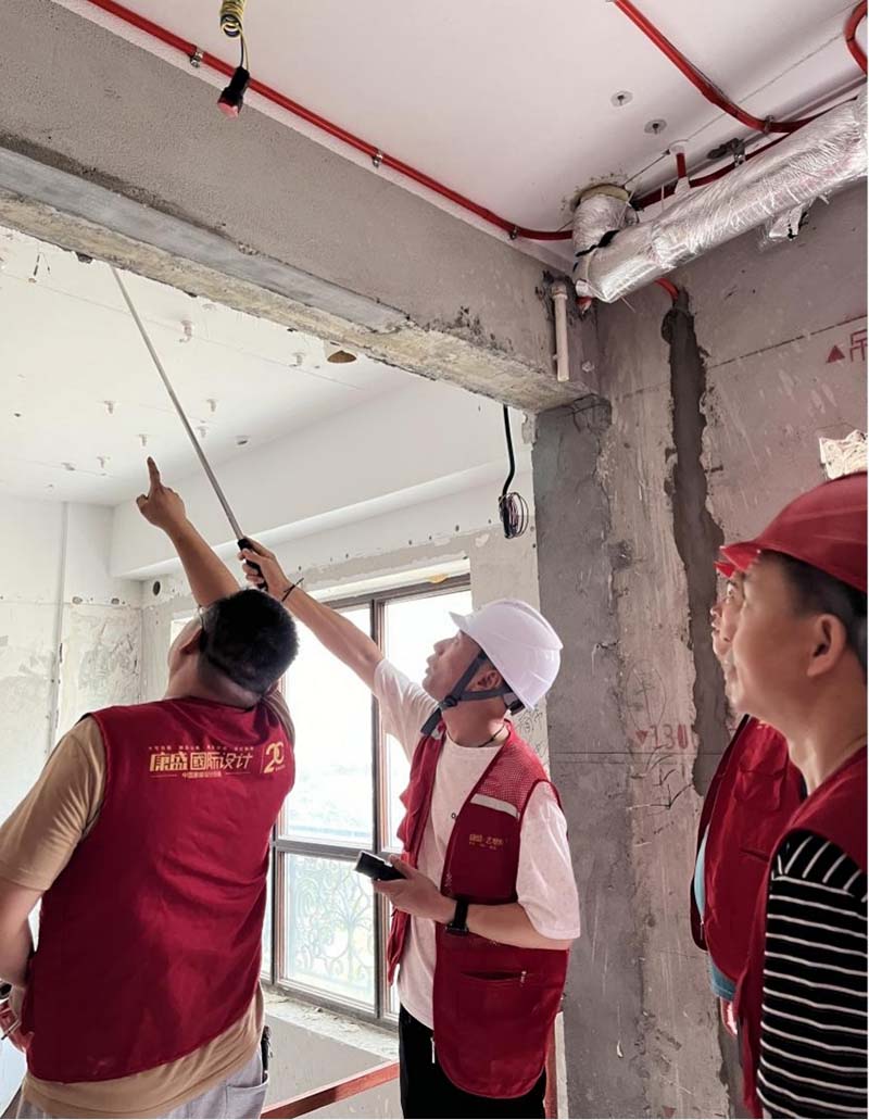 ▲討論電梯井內(nèi)的細(xì)節(jié)處理