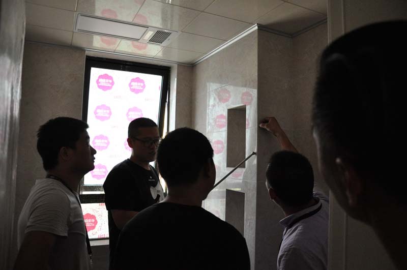 在本次檢查過程中,各項(xiàng)目經(jīng)理著重討論了泥瓦工藝,尤其是貼磚方面的注意事項(xiàng)。優(yōu)秀的泥工師傅,不僅根據(jù)實(shí)際情況,對(duì)瓷磚進(jìn)行浸水處理,更會(huì)自覺對(duì)瓷磚毛邊細(xì)致打磨,使其光滑圓潤(rùn),于細(xì)節(jié)處做到極致,而這也是嘉興康盛裝飾的嚴(yán)苛標(biāo)準(zhǔn)之一。
