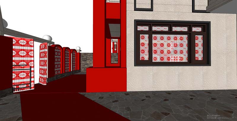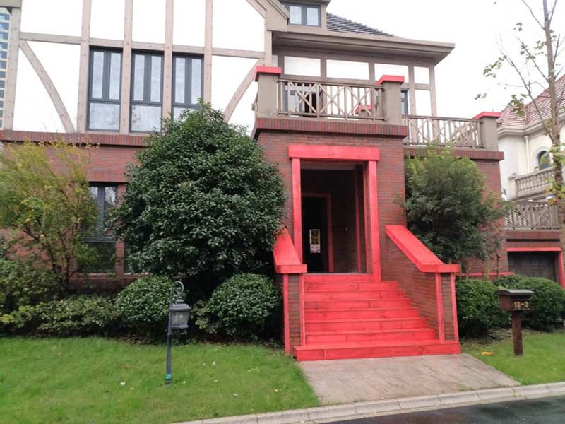 「康盛紅」是門柱上的包板,將施工搬運(yùn)過(guò)程中的磕碰損壞降到最低。