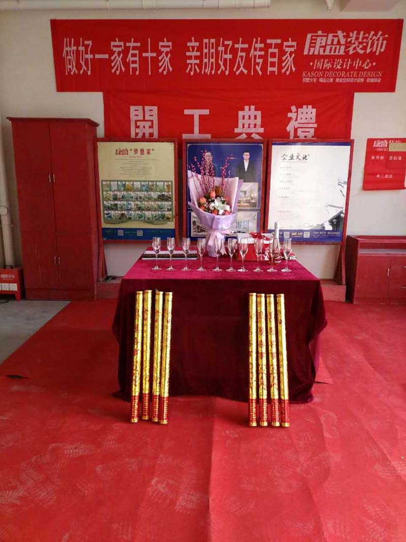 2.正式開(kāi)工:「康盛紅」是一套倍享尊崇的開(kāi)工典禮,特選良辰吉日,運(yùn)營(yíng)總監(jiān)、客戶經(jīng)理、項(xiàng)目經(jīng)理、設(shè)計(jì)師悉數(shù)到場(chǎng),開(kāi)香檳,放禮炮,碰杯合影,共祝美好未來(lái)。最后,由客戶掄起開(kāi)工錘敲墻,寓意正式開(kāi)始開(kāi)工。