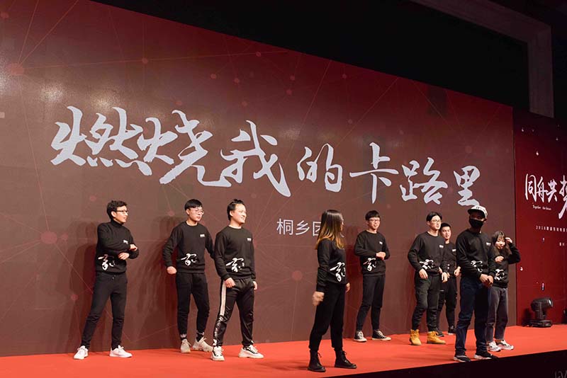 桐鄉(xiāng)團(tuán)隊(duì)開場舞《燃燒我的卡路里》瞬間點(diǎn)燃全場,為晚宴掀起開場的一陣陣高潮。跳躍的舞步、年輕的面孔,展示著康盛人的力量與熱血。