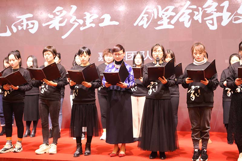 ▲ 嘉興團(tuán)隊(duì)合唱《風(fēng)雨彩虹 鏗鏘玫瑰》