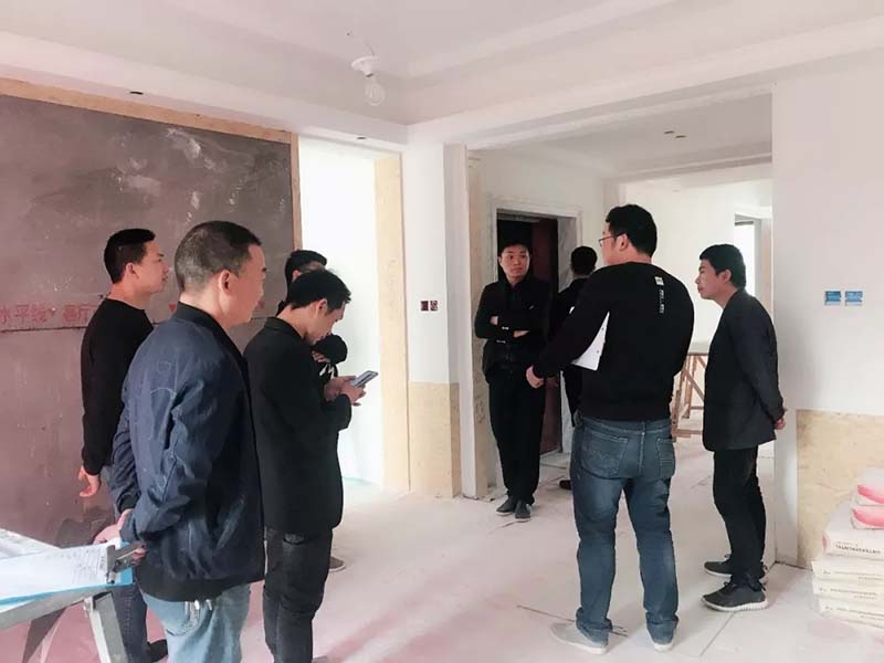 本次檢查的幾處在建工地,除格蘭英郡外的一棟別墅外,其余戶型皆為大平層。但是每個(gè)工地的進(jìn)度都有所不同,同時(shí)所需要工程經(jīng)理們檢查、督導(dǎo)的問題也相應(yīng)的不同。本次主要巡查包括水電安全、墻面批灰、墻地磚收縫等問題。