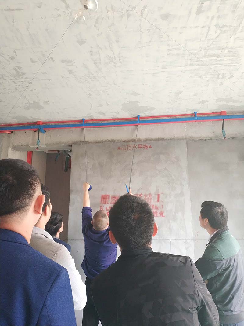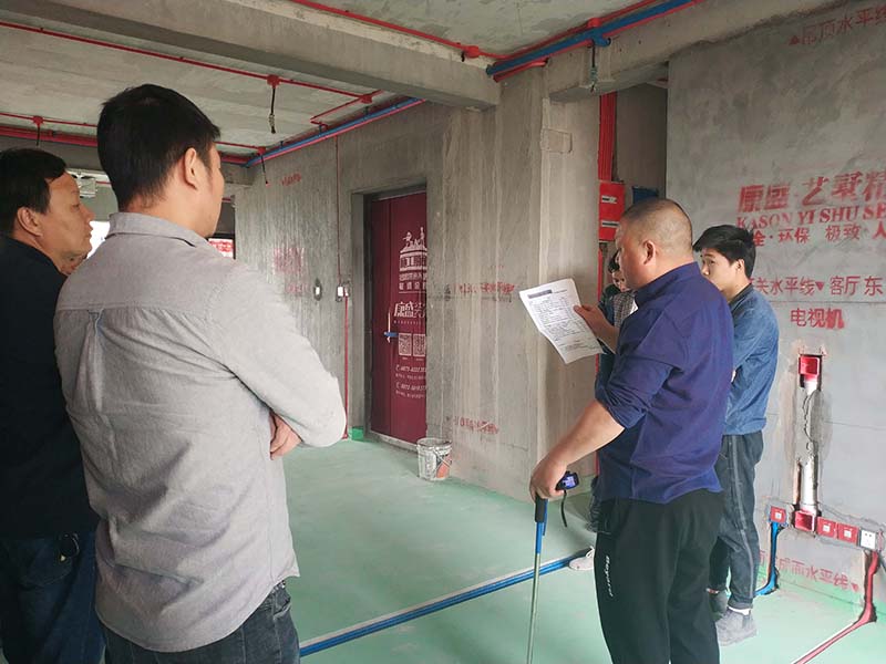 本次巡檢主要針對悅湖灣一處剛完成水電的工地。參與本次巡檢的除了工程總監(jiān)王金晶、質(zhì)檢陳福臻、項目經(jīng)理,還有桐鄉(xiāng)所有的水電班長,旨在進行魔鬼檢查的同時對工藝進行更全面、更細致的培訓(xùn)。