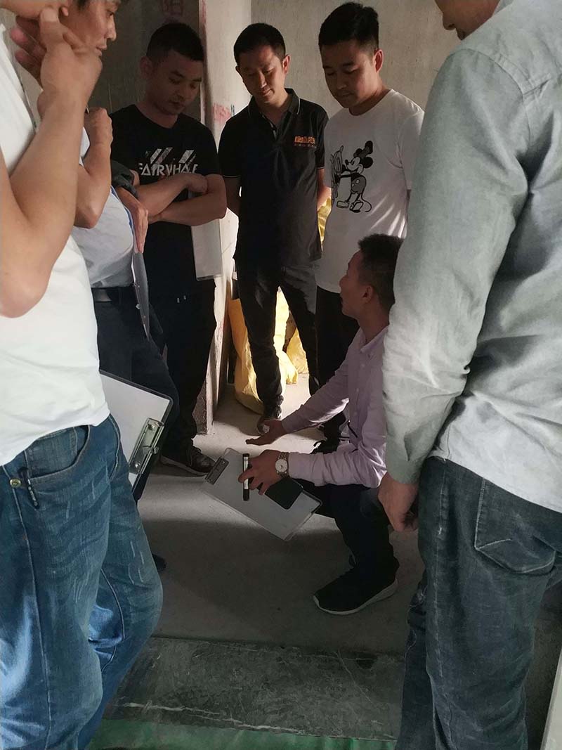 本次檢查的幾處在建工地,別墅與大平層都具備。由于每個(gè)工地的進(jìn)度有所不同,因此所需要工程經(jīng)理們檢查、督導(dǎo)的問(wèn)題也相應(yīng)的不同。每個(gè)施工現(xiàn)場(chǎng)檢查團(tuán)們都根據(jù)實(shí)際情況給予專業(yè)的建議與方式方法。本次主要巡查包括水電排水管工藝、貼磚工藝、燃?xì)馀艢夥植嫉仁┕み^(guò)程中多易被忽略的問(wèn)題。