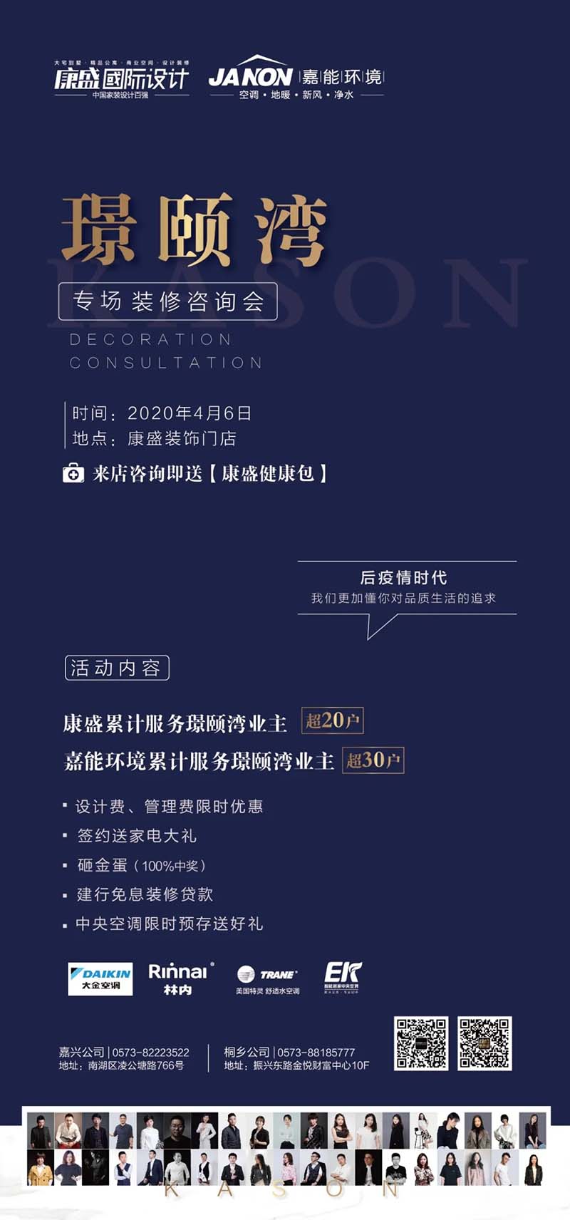 康盛裝飾&嘉能環(huán)境丨璟頤灣專場(chǎng)家裝咨詢會(huì)
