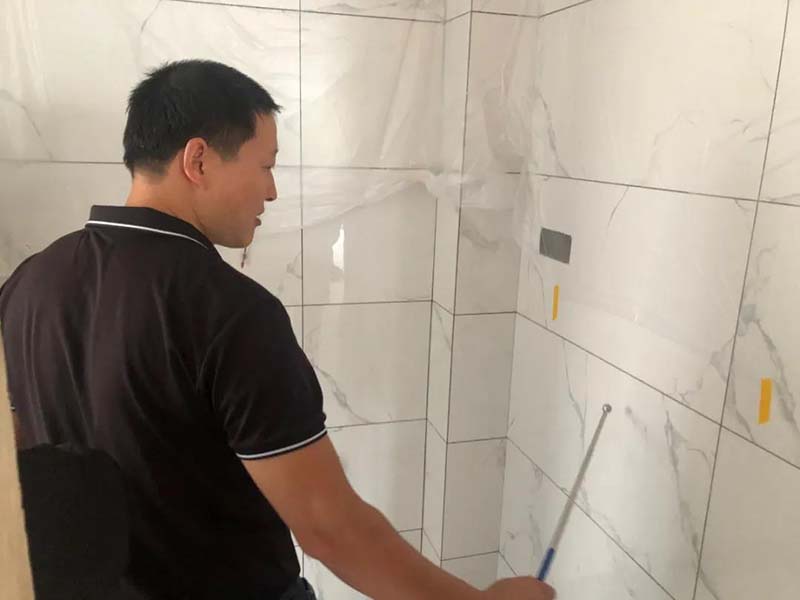 ▲檢查瓷磚面是否有空鼓現(xiàn)象