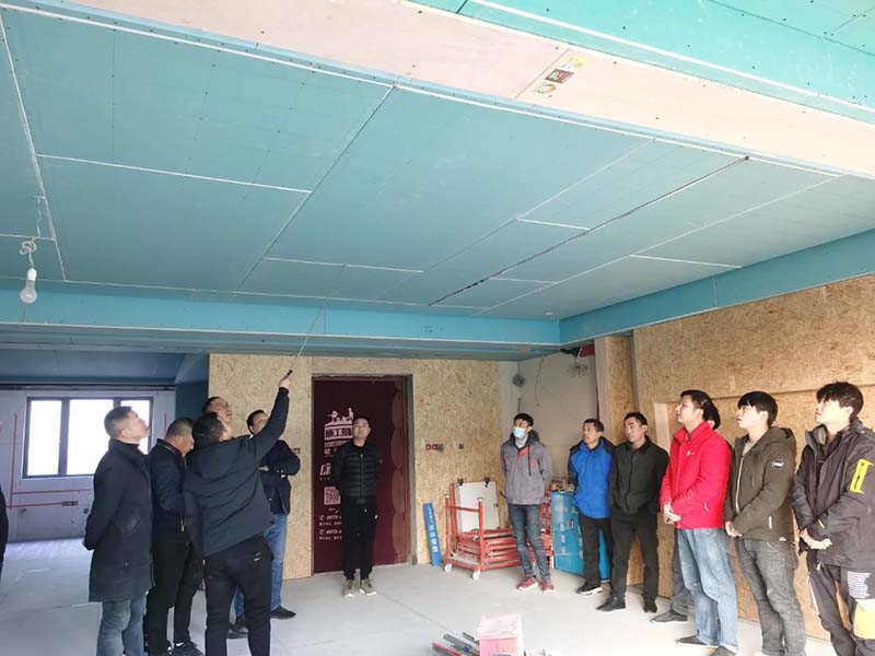本次除了例行工地巡檢外,還在現(xiàn)場(chǎng)進(jìn)行了木工工班技術(shù)培訓(xùn)。裝修木工階段的工程量是比較大的,并且關(guān)系著整個(gè)房屋裝修的美感和實(shí)用性。