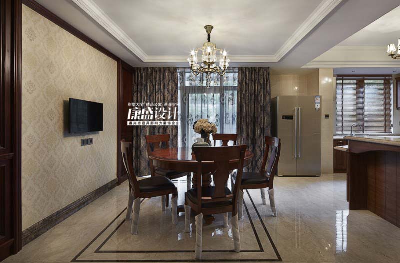 追求的是尊崇時尚、品味高雅的生活方式。電視背景采用大面的暖色系大理石,同時加上適當(dāng)?shù)纳钌o墻板, 配上水晶吊燈,彰顯出奢華與時尚,借經(jīng)烘托屋主自已選配的頂級歐式家具家飾。闡釋了新貴階層高品位的生活態(tài)度。