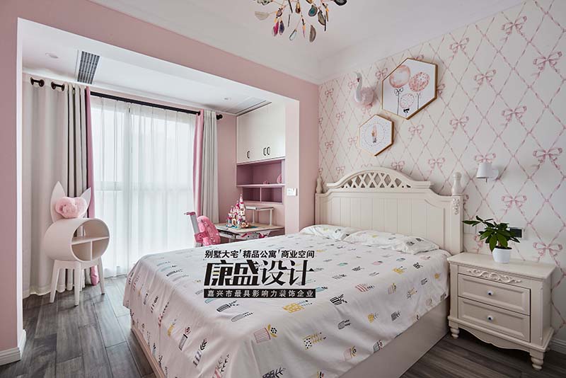 忙碌的白天過后,回到藍色墻紙的臥室,釋放一天的疲憊;可愛的小妹妹有一個公主情結,喜歡粉粉的,床背景的蝴蝶結讓整個屋子充滿了少女情懷。