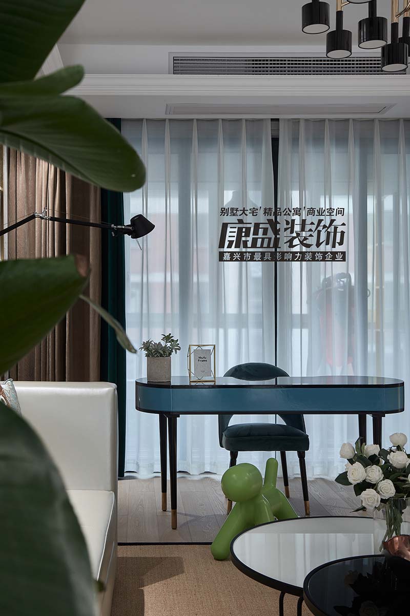 客廳的另一角增加了辦公桌,兼具實(shí)用性與功能性,讓男女主人可以有更多的時(shí)間陪伴家人。