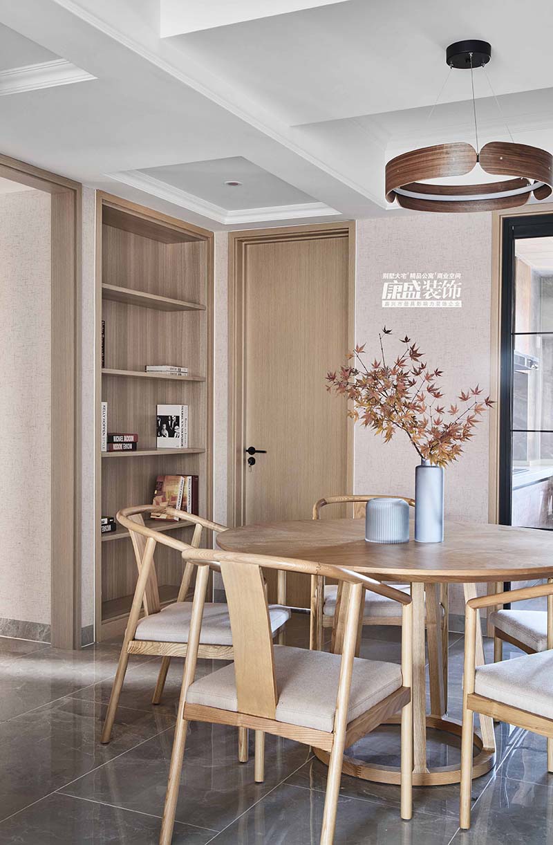本案以新中式為主,但不是傳統(tǒng)意義上比較呆板的中式,和現(xiàn)代做了一個(gè)結(jié)合,沒(méi)有過(guò)多的裝飾,看上去更加淳樸自然。