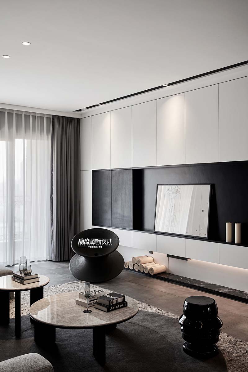 本次案例把黑白和燈光做了一個完美的結(jié)合,合理地運(yùn)用燈光增加空間的高級感,同時也能打破黑白的沉悶感,所以燈光設(shè)計在家裝設(shè)計中尤為重要。