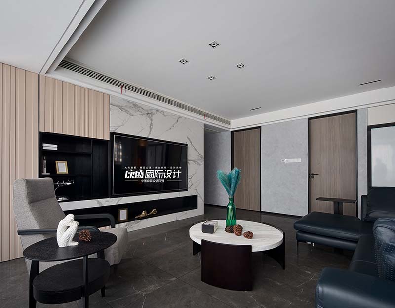 富有自然肌理感和溫潤質(zhì)感的大理石,搭配時(shí)尚簡約的家具和藝術(shù)感的飾品,勾勒出空間低調(diào)優(yōu)雅而不失溫馨的高級氣質(zhì)。