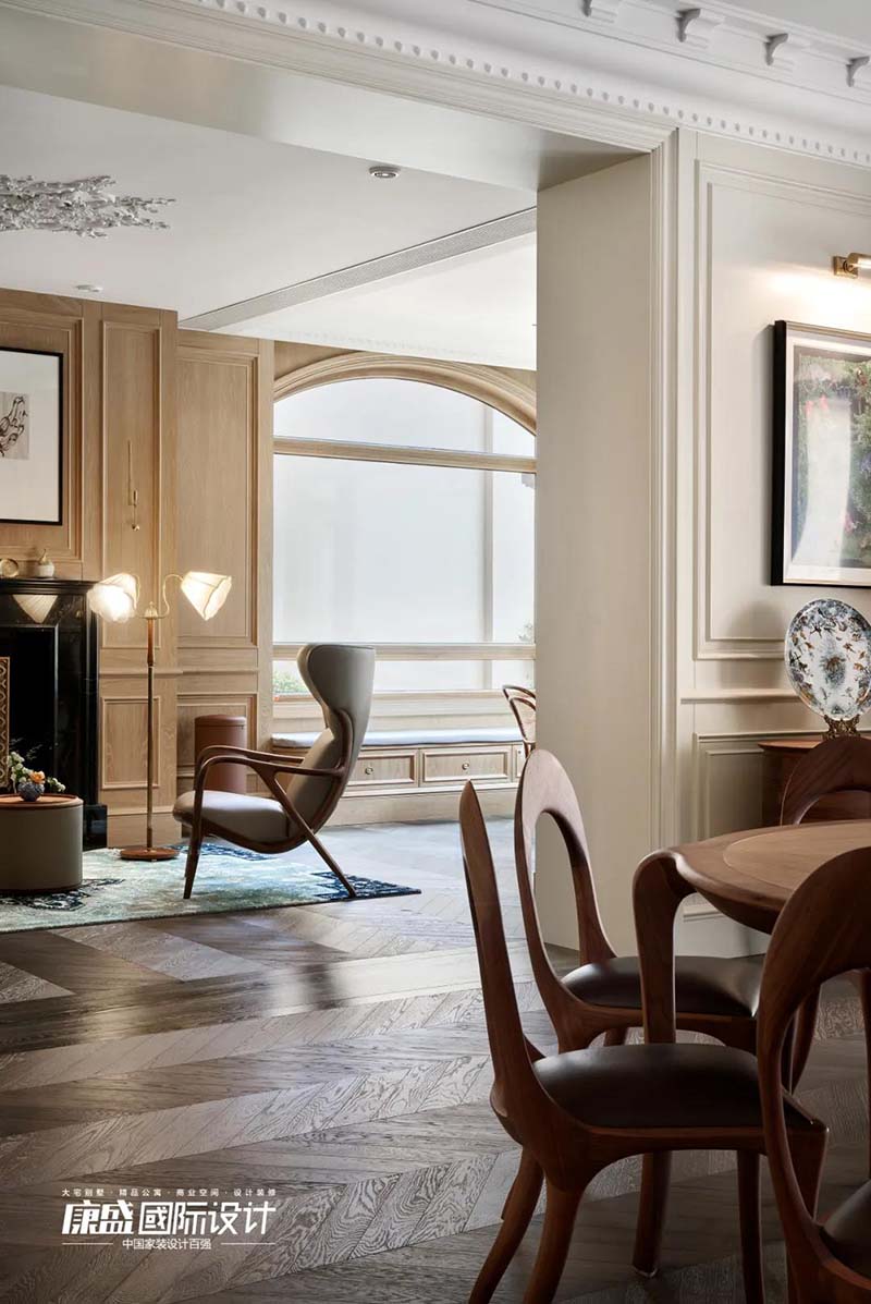 The family hall uses the classic wind of log color and the warm tone of solid wood furniture, allowing light and shadow to flow into the space and lock the time.