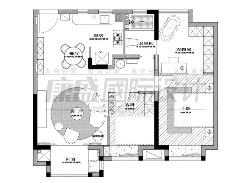 設(shè)計(jì)格言:空間和功能是室內(nèi)設(shè)計(jì)的前題。摒棄一切華而不實(shí)、毫無意義的修飾,用簡(jiǎn)單的符號(hào)來刻畫完美精致的生活
