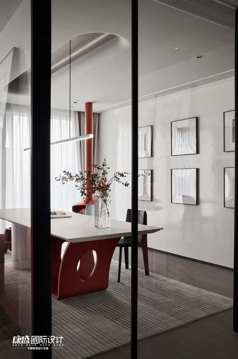 玻璃元素塑造通透感,彰顯生活的儀式。紅色柜瞬間點(diǎn)亮空間,有眼前一亮的驚喜,大膽不浮夸,讓溫暖的家富有熱愛(ài)生活的朝氣。
