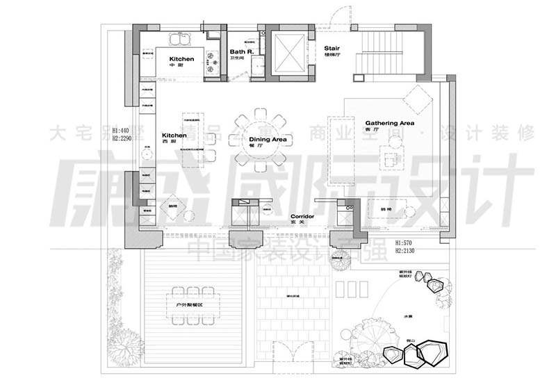 Chinese courtyard design emphasizes a natural, peaceful, and minimalist style, emphasizing integration with the natural environment to create a peaceful and comfortable atmosphere. The overall layout is concise, emphasizing the sense of spatial balance.