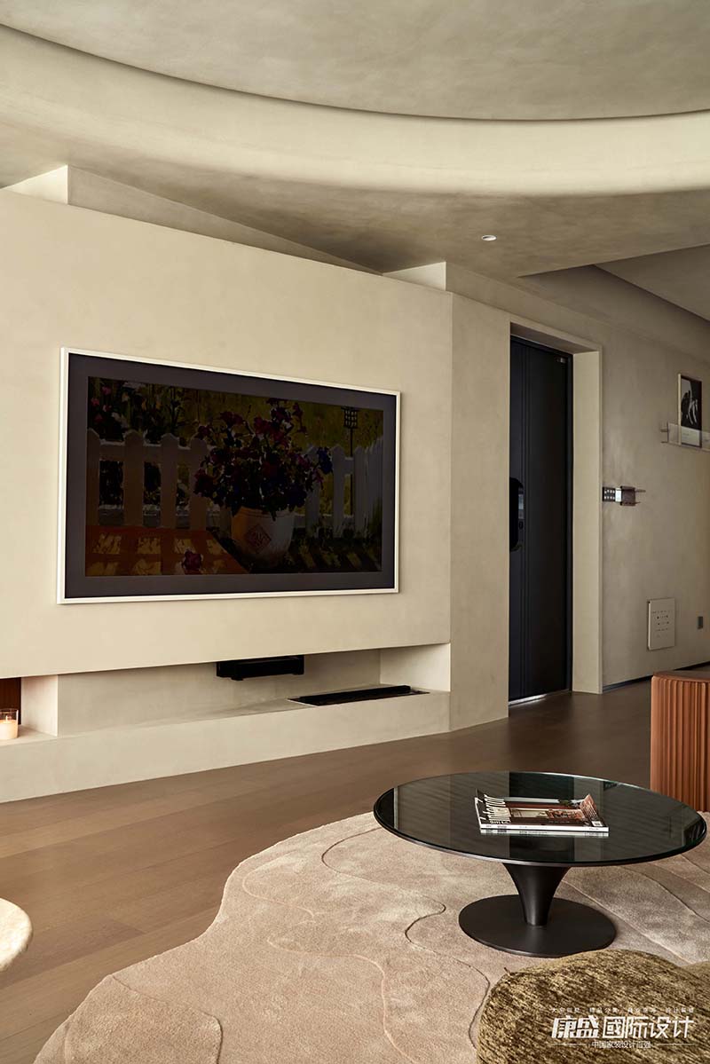 The whole house adopts cream white as the background color, setting a romantic tone, paired with walnut furniture, adding a retro atmosphere. The classic curved door opening, circular ceiling, and romantic medieval lighting convey the calm, atmospheric, and delicate charm of the medieval style in restraint.