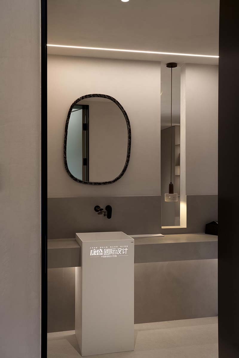 頂部采用流暢的線條設計,走道作為中軸線,擴展了整個視覺效果。整體布局視野開闊,保持了空間的開放感,各個區(qū)域有序分布,營造出一個既純粹又高雅的生活環(huán)境。